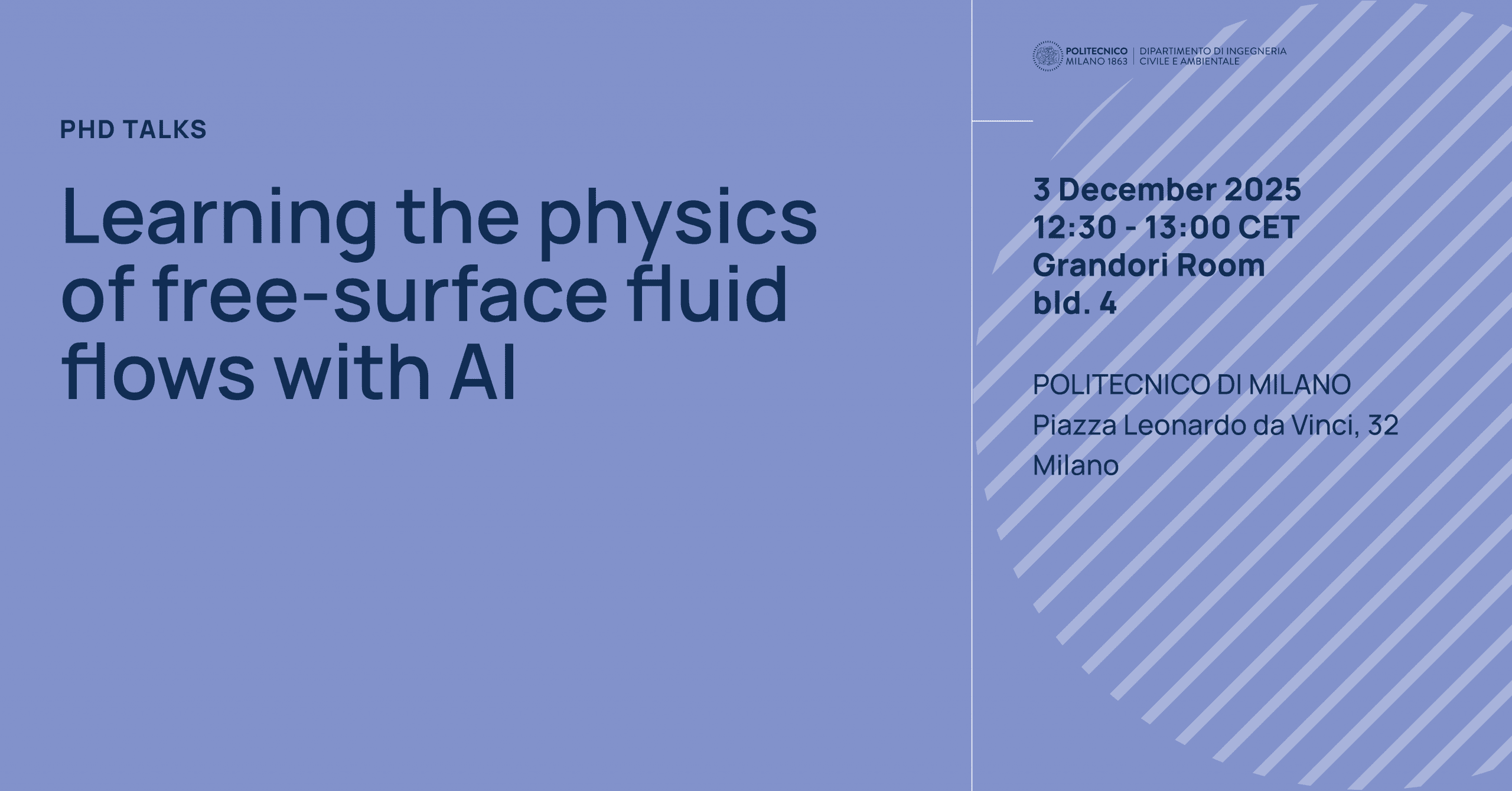 Lo speaker Federico Lanteri condurrà un seminario dal titolo “Learning the physics of free-surface fluid flows with AI”.