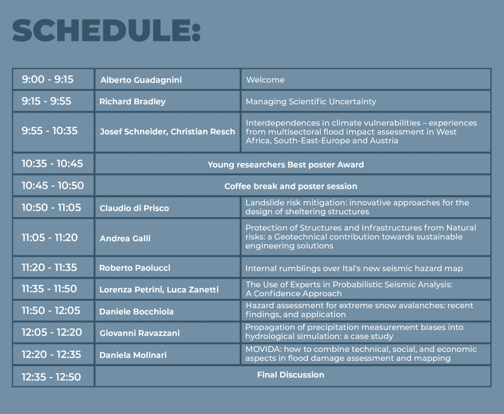Il tema del seminario sarà: “Environmental, Natural and Anthropic risks: from modelling to ethical decisions”.